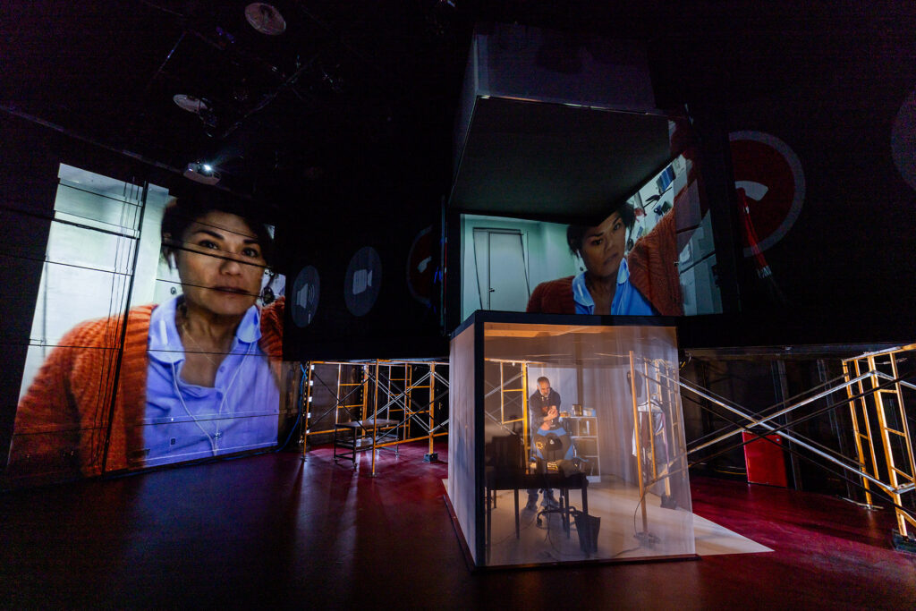 Janis Hudson as Mrs. Merriweather confronts the Lion in Adam Theater’s 2025 production of LIBRARY LION.