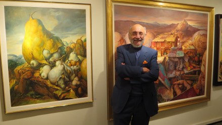 Bak first painted pears when he was preparing for a big show in Paris during the 1960’s. “I suddenly realized that the pear can be used for all kinds of things that bring different thoughts with them,” he said. For example, the pear brings to mind the female form. It also, according to Bak, can symbolize the limitation of human knowledge. “No one really knows what was the fruit of knowledge,” chuckled Bak, who admitted that, as a child, he disliked apples and that the pear was his favorite fruit.